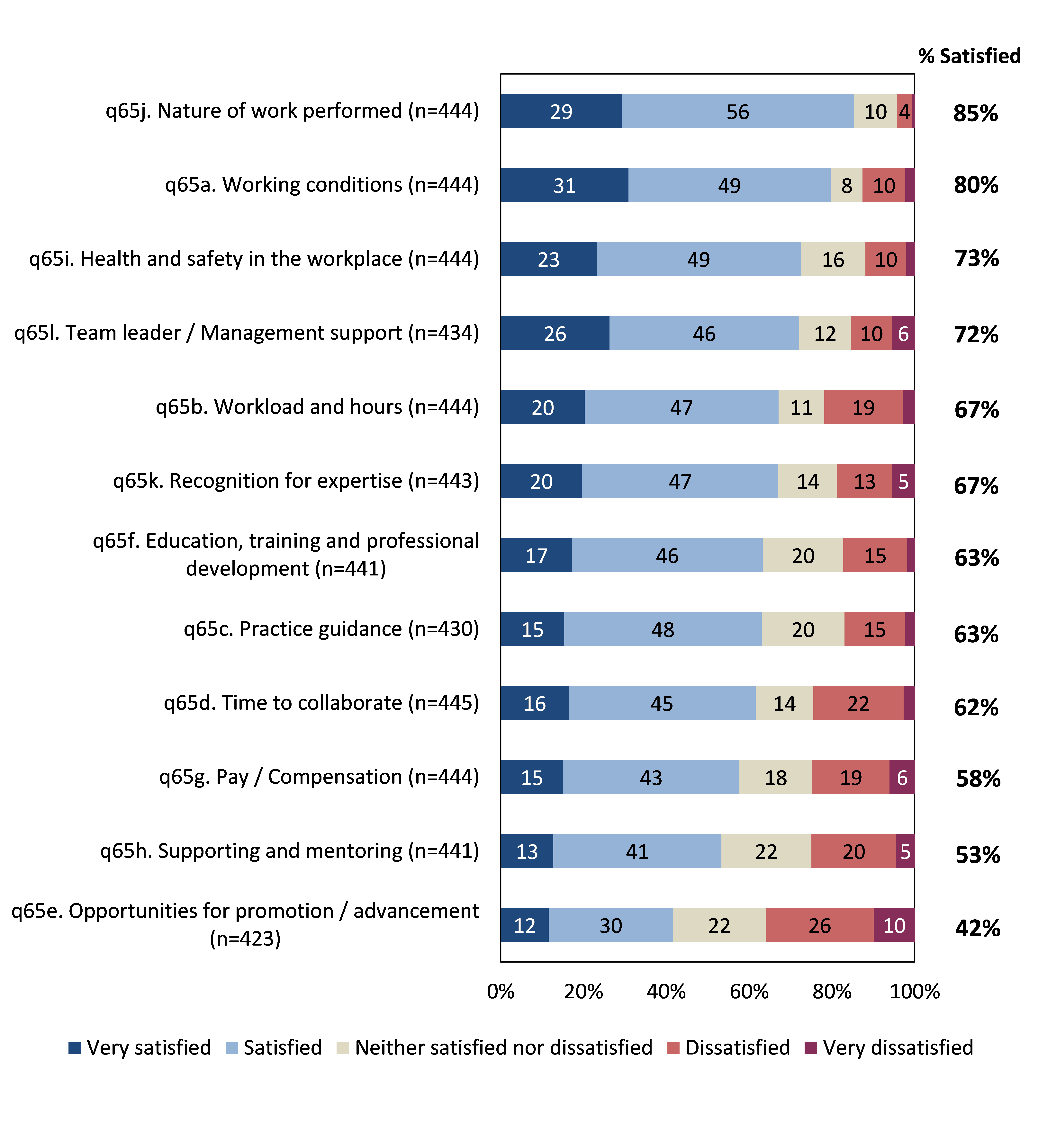 - lowest among those employed in health promotion (21%) and women’s health (26%).