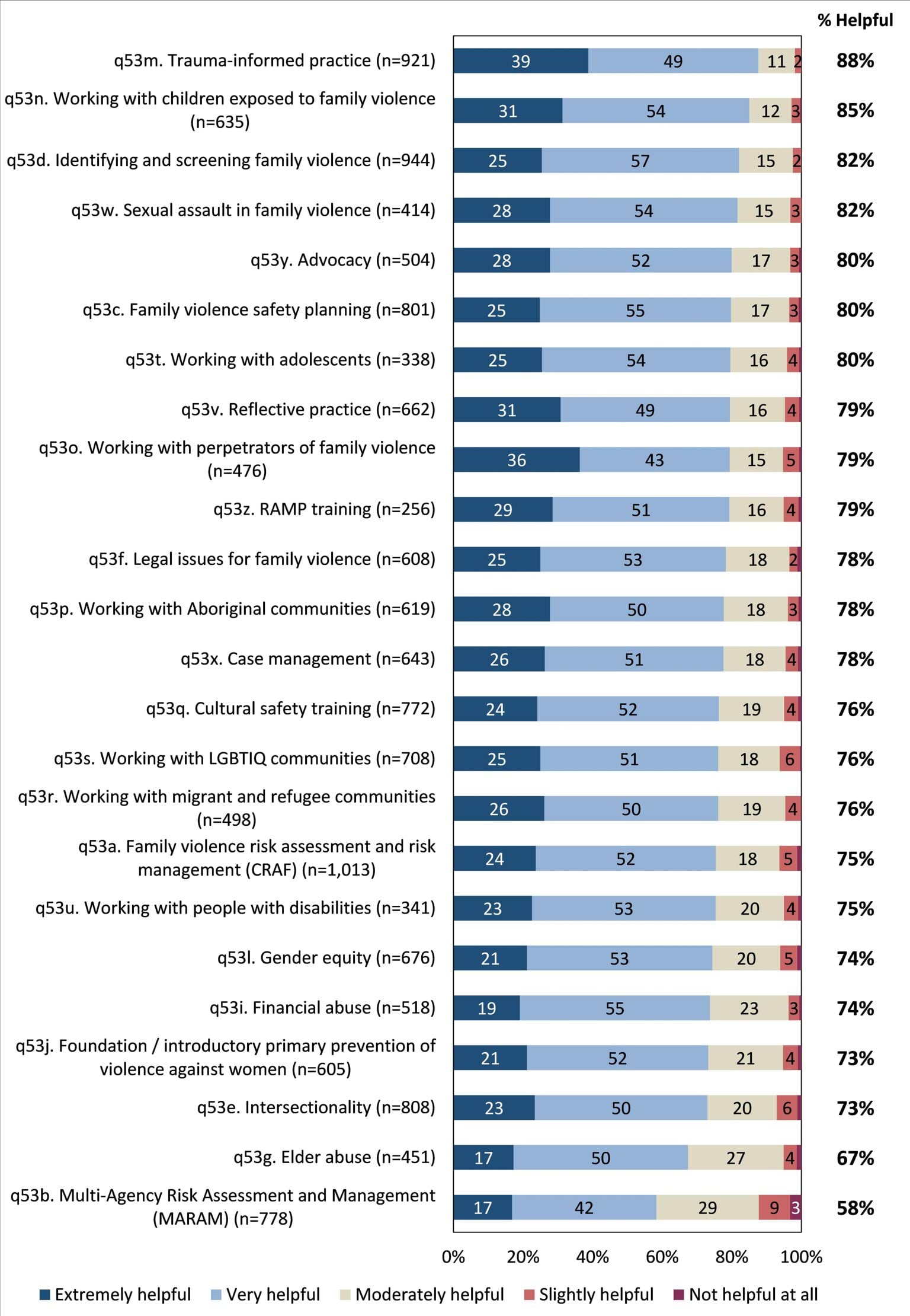 - sexual assault in family violence (82% felt this was ‘extremely’ or ‘very’ helpful).