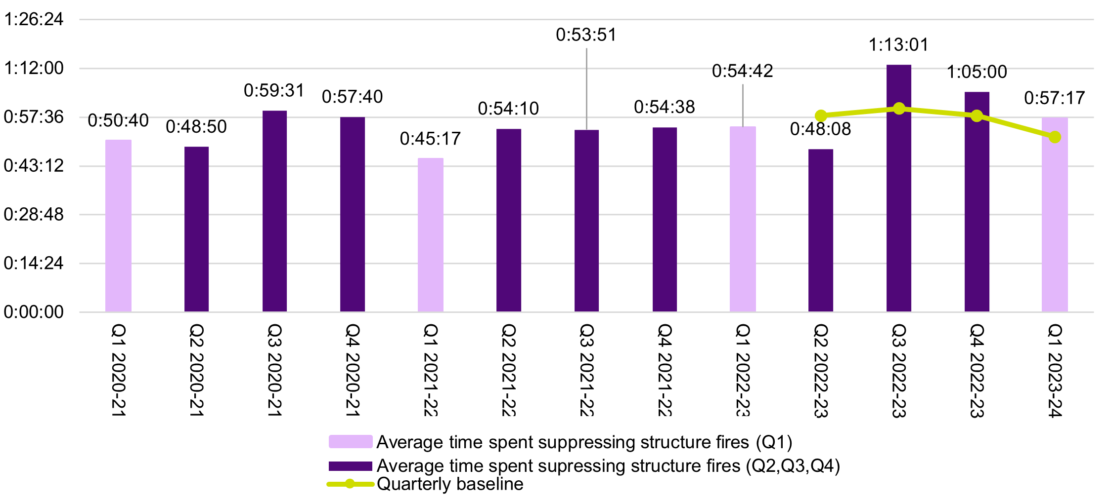 FSIM notes that in Q1 2023-24, CFA recorded the highest average time spent to supress structure fires year-on-year since Q1 2020-21, outlined in Figure 5 below.