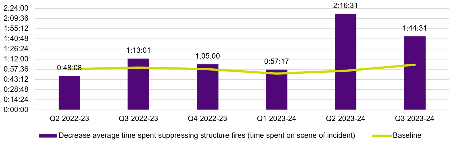 - CFA: Decrease average time spent suppressing structure fires (time spent on scene of incident) (indicator 2.2.3).