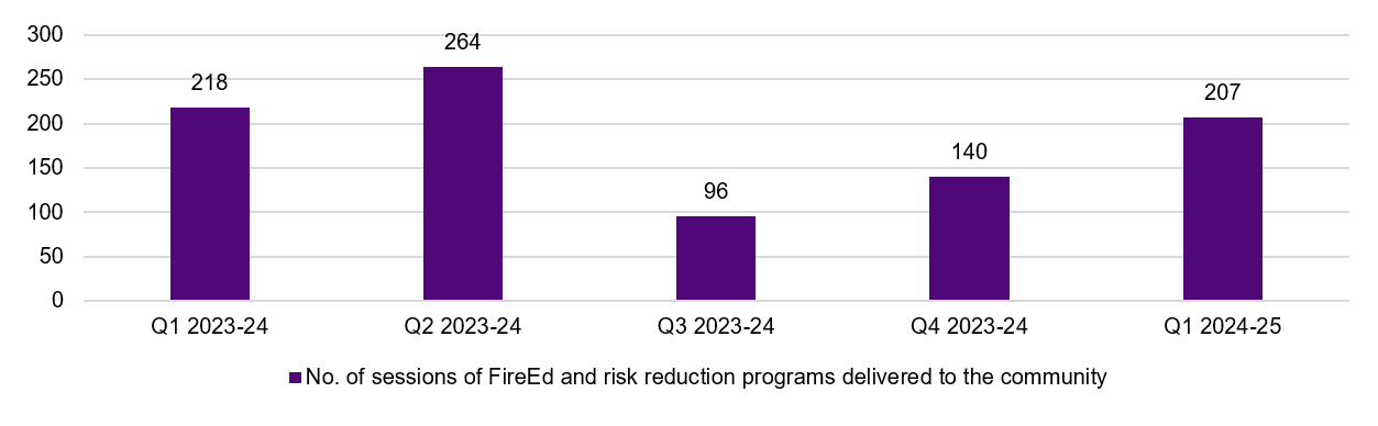 FRV delivered 207 FireEd and risk reduction programs this quarter, including Senior’s Fire Safety, FireCAP and Fit2Drive programs. This is a 48 per cent increase compared to the previous quarter’s result (Figure 2 below).