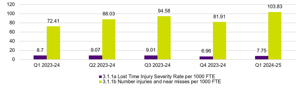 FRV reported a significant increase in the measure of injuries and near misses per 1000 FTE this quarter. This quarter’s result is also the highest recorded result to date (Figure 6 below).
