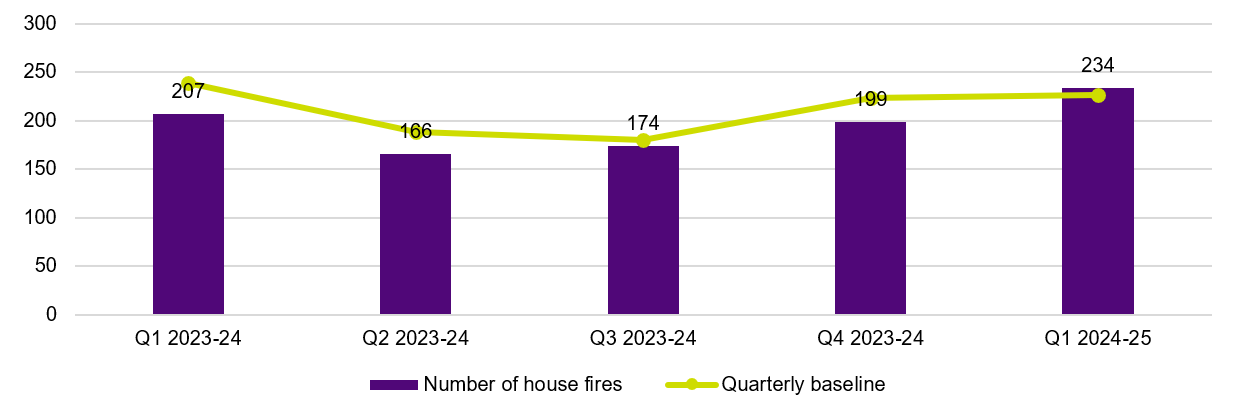 CFA reported 234 house fires this quarter. This marks an 18 per cent increase from the previous quarter and is a negative change (Figure 5 below).