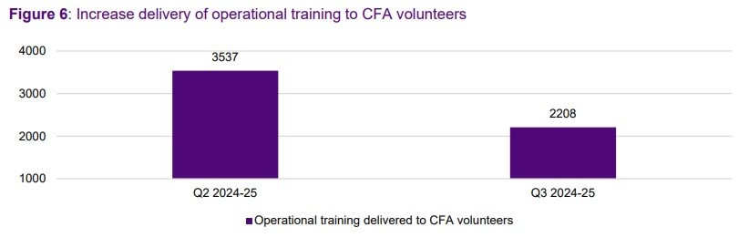 The CFA advises that this result, which is lower than the level of training completed in Q2, is as expected given quarter 3 is the peak operational period within the fire season.