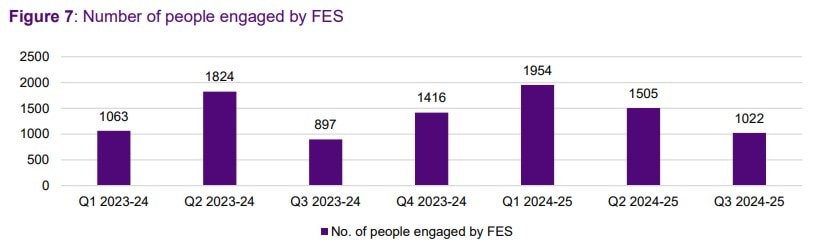 FRV reported a decrease in the number of people engaged by FES from 1,505 in the previous quarter to 1,022 this quarter. This is a decrease of 47.3% (Figure 7).