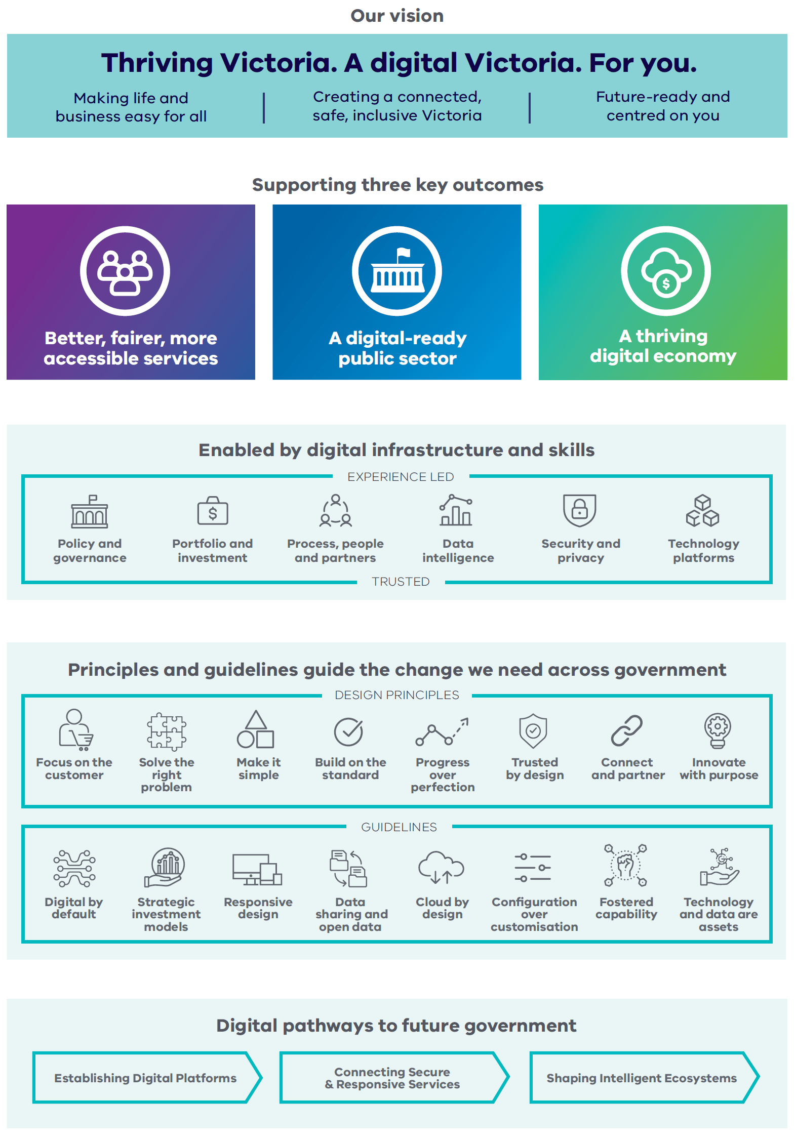 To realise its vision and deliver these outcomes, the Victorian Government will drive transformation across Victoria through investment in critical digital infrastructure and skills. To guide investment, the Strategy defines six key strategic enablers.