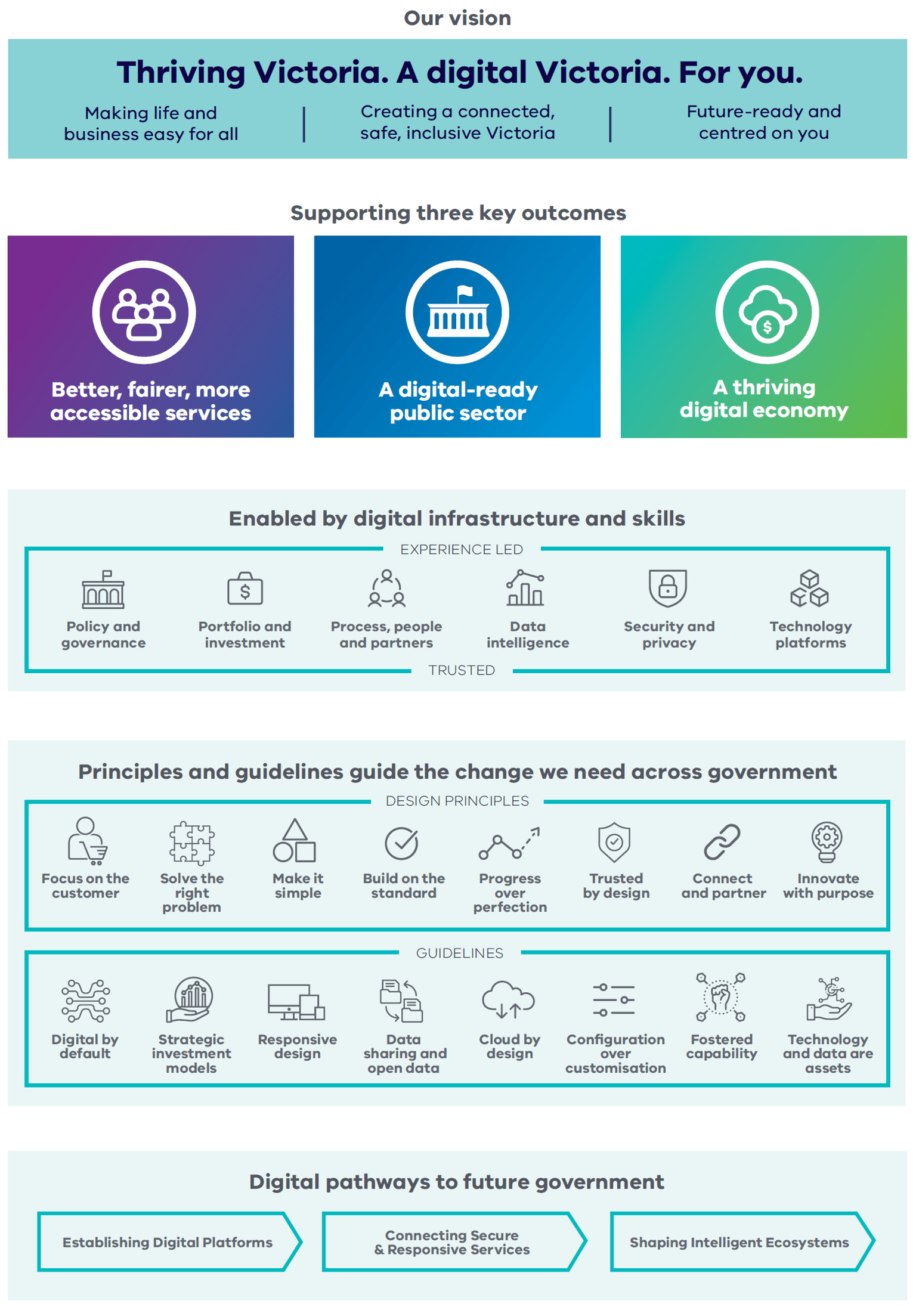 Three digital pathways guide and connect the change, anchored by clear and defined digital experiences for Victorians. They define the horizons of digital maturity to realise our vision.