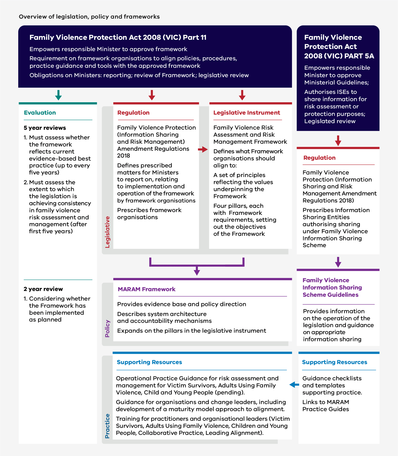 - Operational Practice Guidance for risk assessment and management for Victim Survivors, Adults Using Family Violence, Child and Young People (pending).