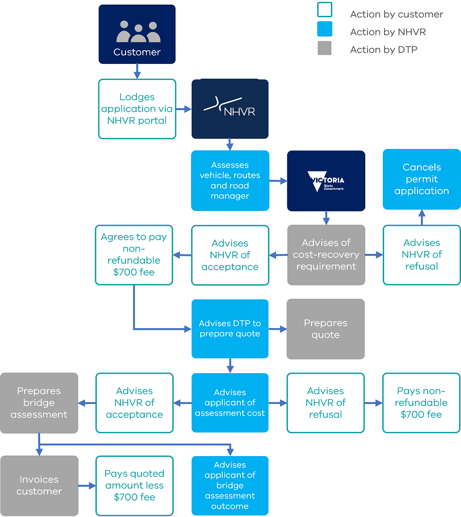 The duration of the bridge assessment is specified on the permit. New assessments can be streamlined in the case of repeat journeys by the same applicant, vehicle and route. In such cases, the assessment may vary if a structure deteriorates or is upgraded.
