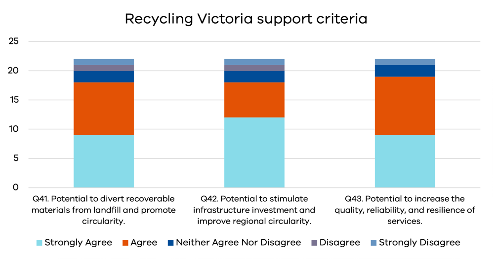“Agree with all the proposed criteria for determining and prioritising the council and ARV procurement activities that Recycling Victoria will support.”