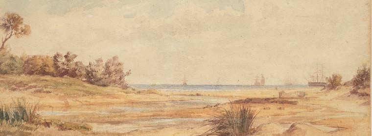 The sandy landscape of Sandridge, as depicted in a painting of 1853 by artist Edmund Thomas (source: Picture Collection, State Library of Victoria)