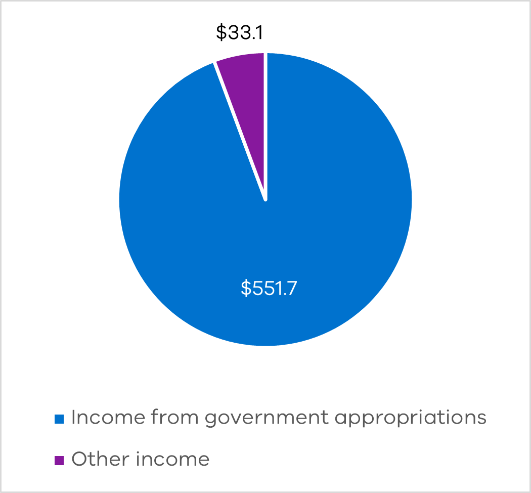 The sources of income available to DPC during 2024-25 are demonstrated in the chart below. DPC’s main source of income in 2024-25 was from government appropriations, which accounted for 94% of income. The balance was derived from resources received free of charge, government grants, and services.