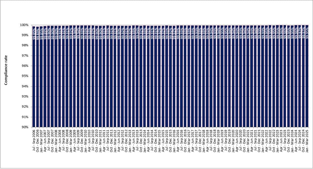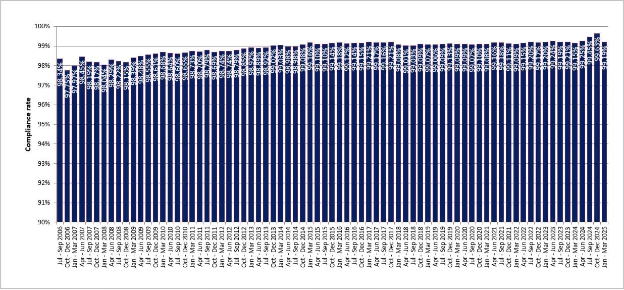 Driver compliance rates mobile from July 2006 to March 2025
