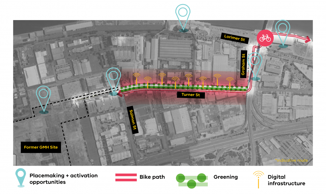 To support this major investment, the Fishermans Bend Taskforce has partnered with the City of Melbourne to deliver early works on Turner Street in a complementary project called ‘Gateway to GMH’.