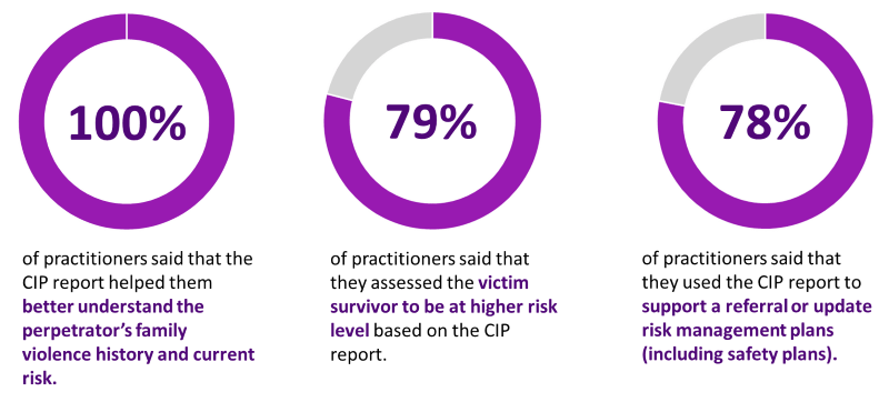 A 2021 survey of practitioners in The Orange Door demonstrates the value the CIP provides to practitioners and victim survivors in risk assessment and management.
