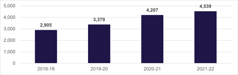The number of CIP reports delivered annually increased from 2,905 in 2018–19 to 4,539 in 2021–22 (a 56.2 per cent increase). During this time, the CIP was implemented for The Orange Door network from 2018–2022, for the Risk Assessment and Management Panels from 2020–2022 and it commenced service delivery to Men’s Referral Service and Safe Steps in November 2022, in line with the Royal Commission’s recommendation.