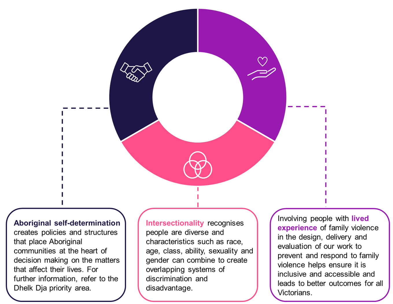 Each of these themes is considered across the delivery of all areas of family violence reform.