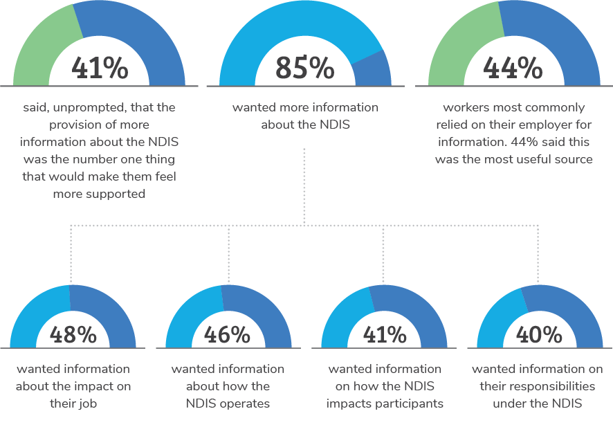 Workers emphasised that information about the NDIS needs to be delivered well ahead of rollout, tailored to their clients and setting, delivered through a variety of channels and focused on the impact of the NDIS on workers as well as participants.