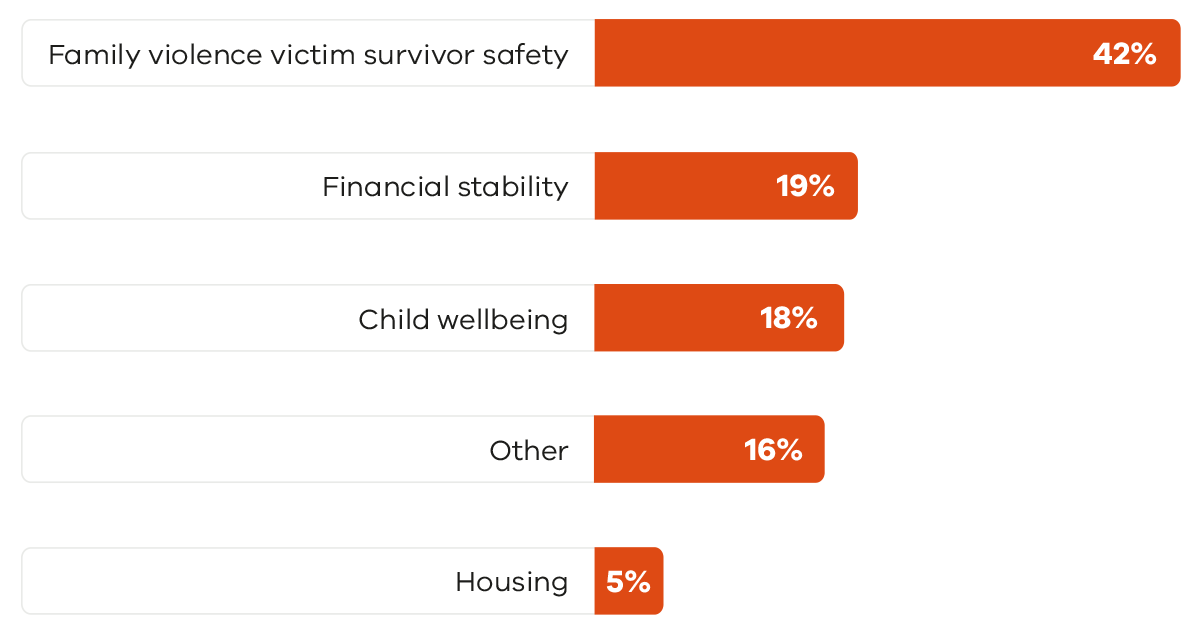 In 2021-22, The Orange Door network provided more than 17,000 crisis responses and short-term interventions and nearly 23,000 connections to services. A breakdown of brokerage supports according to the needs identified shows that a reasonable share is devoted to family violence victim survivor safety (Figure 13).[21]