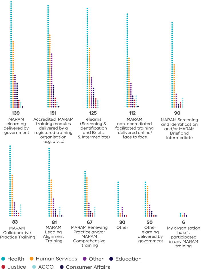 The MARAM Framework Annual Survey asks respondents what training types they and others in their organisation have received.