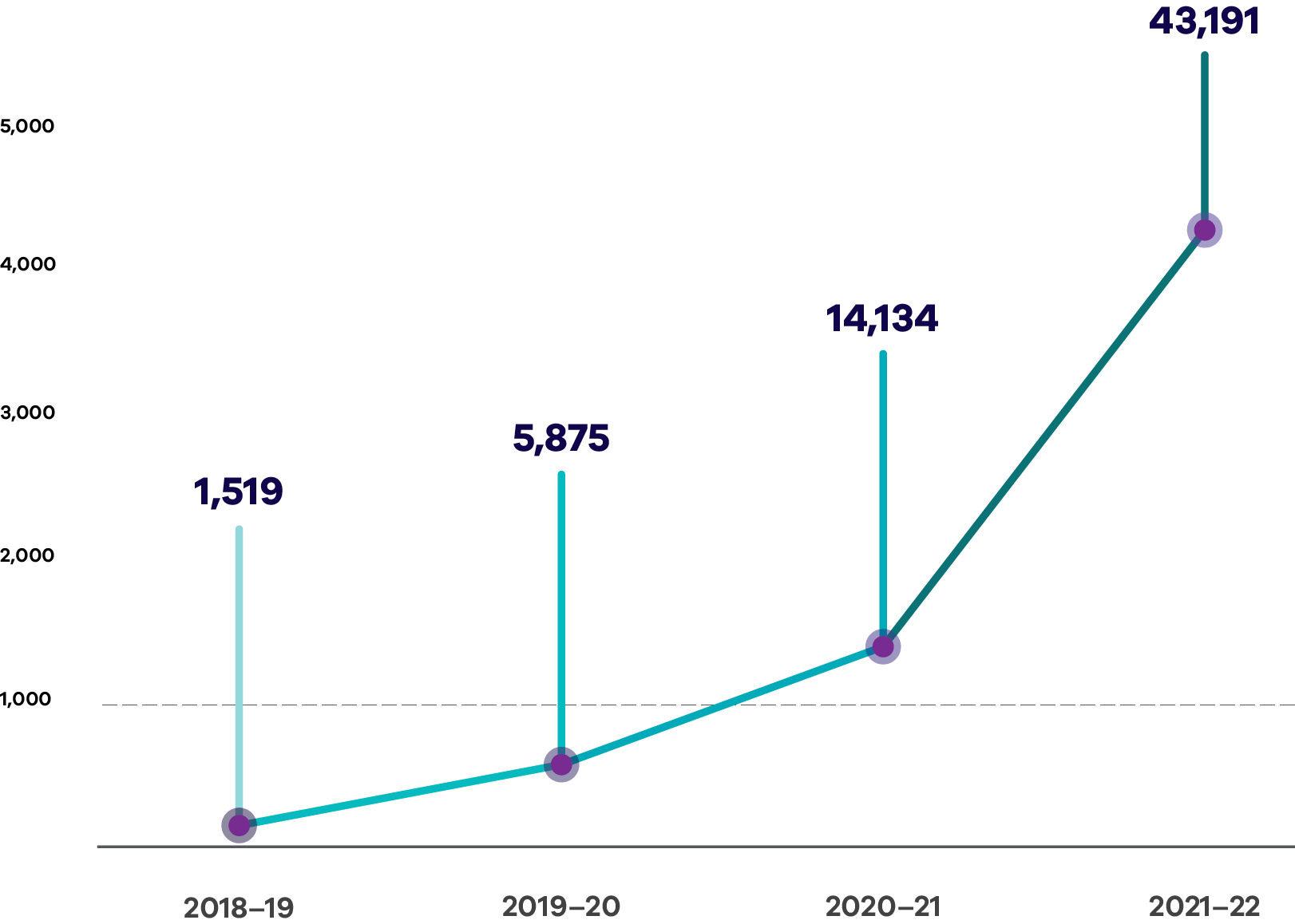 Non-accredited training (outside of the technical and further education (TAFE) and university sector) allows for upskilling workforces within a short timeframe to meet demand. There has been an increase of 205 per cent on 2020–21 figures, with 43,191 professionals having now received MARAM training.