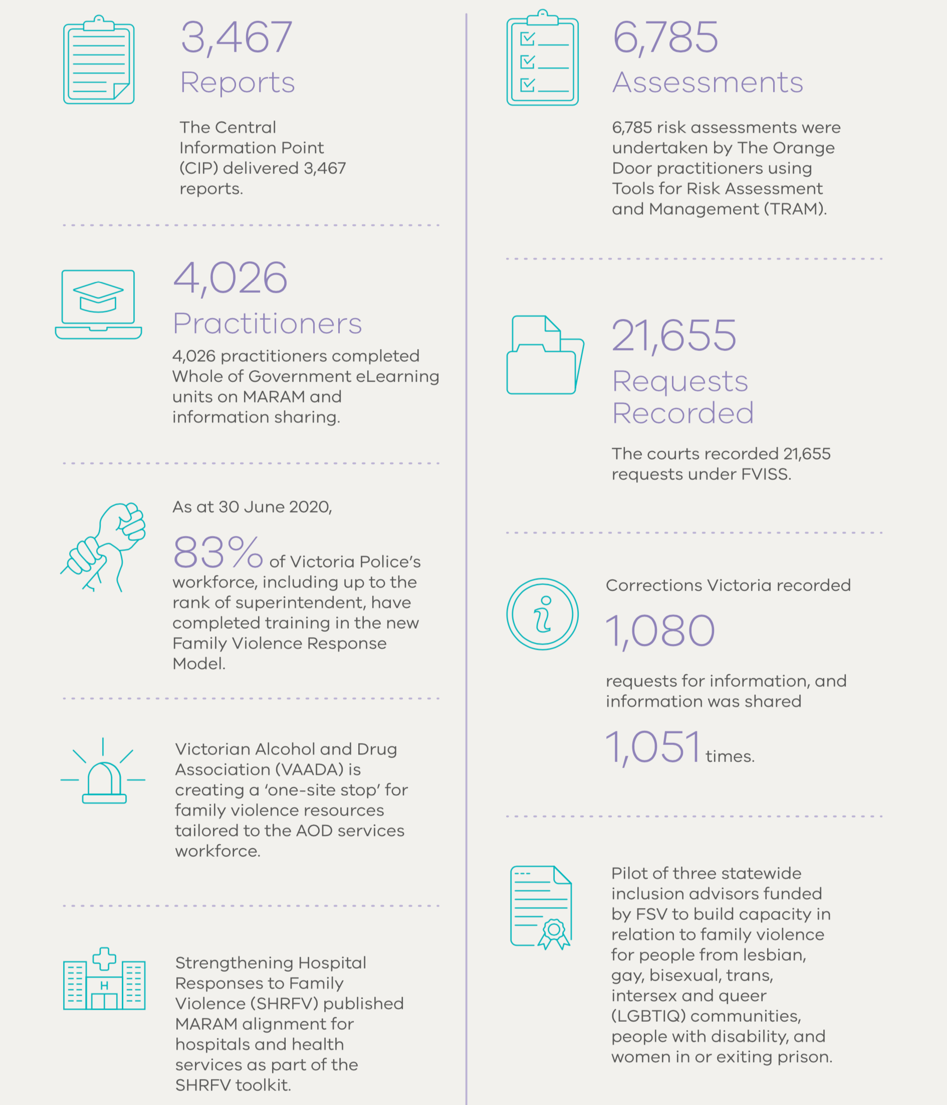 - 4,026 practitioners completed Whole of Government eLearning units on MARAM and information sharing.