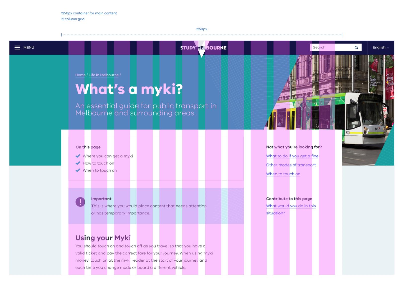 If you’re following a basic 12-column grid, there are a few structural suggestions you could follow. Using a standard content page as an example (which could include a variety of modules), we’ve made a few suggestions below.