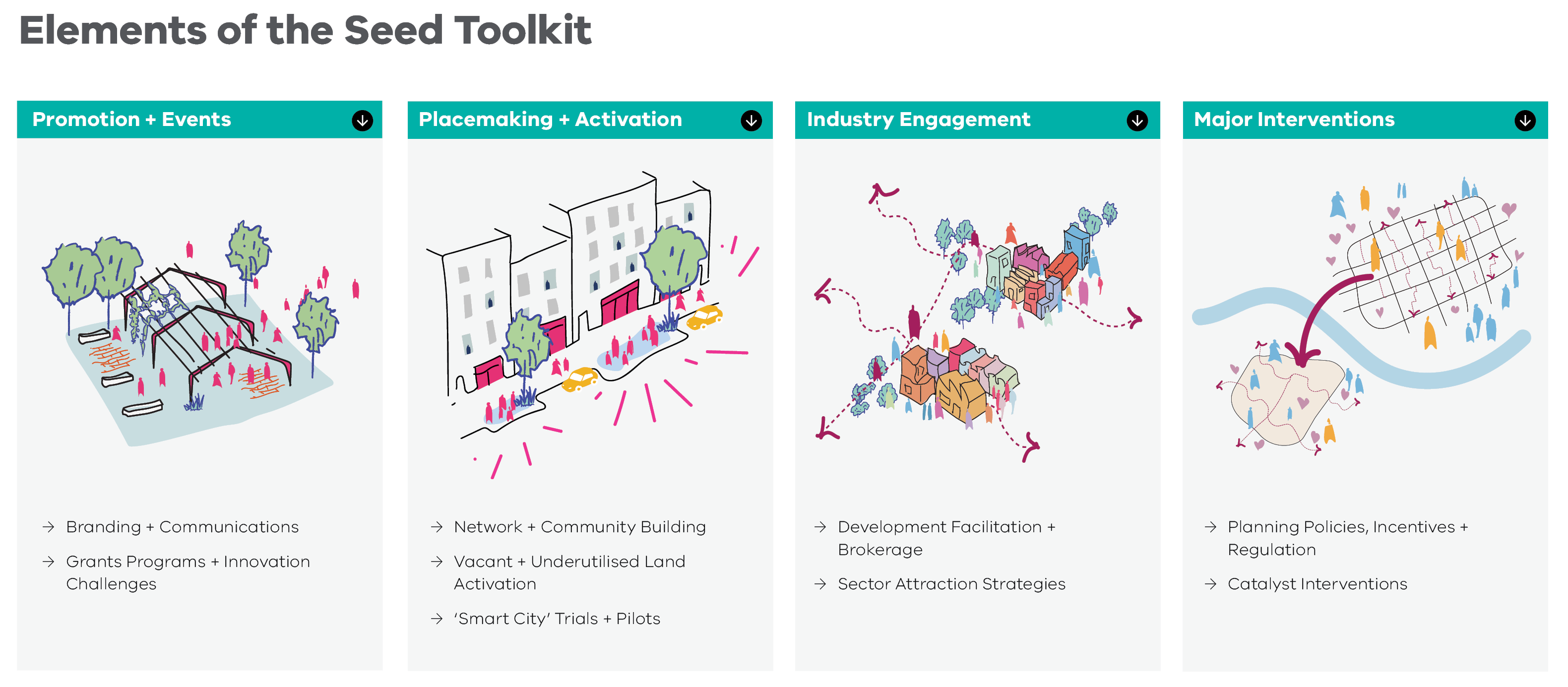 Read more about the Seed Toolkit and the range of place-based economic development levers to seed activity in Fishermans Bend: