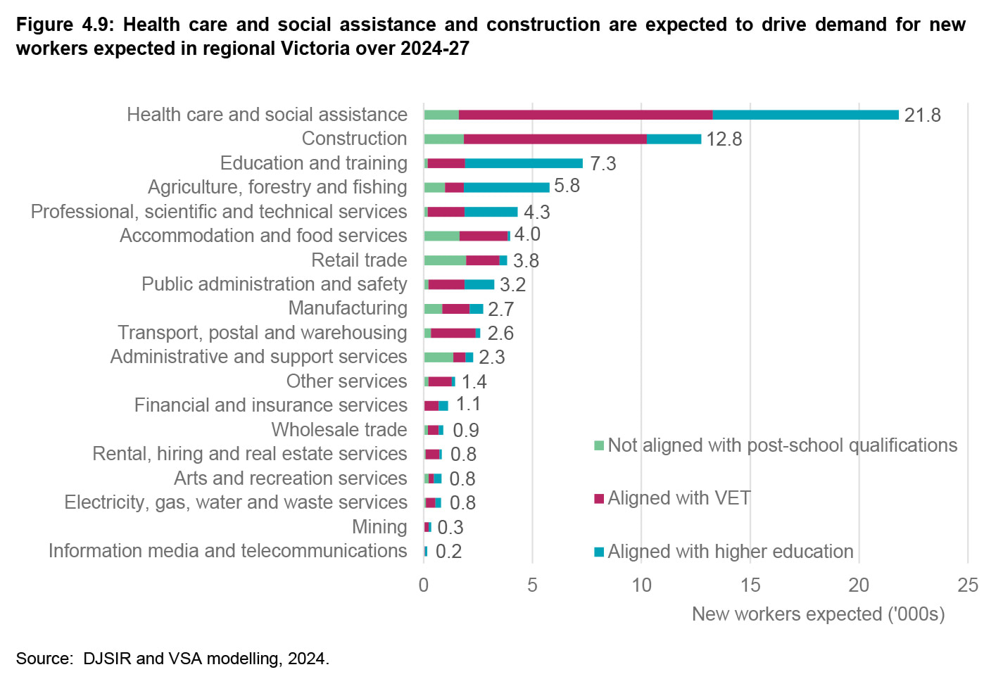 Around 48.6 per cent of new workers expected in regional Victoria will be in VET-aligned occupations.