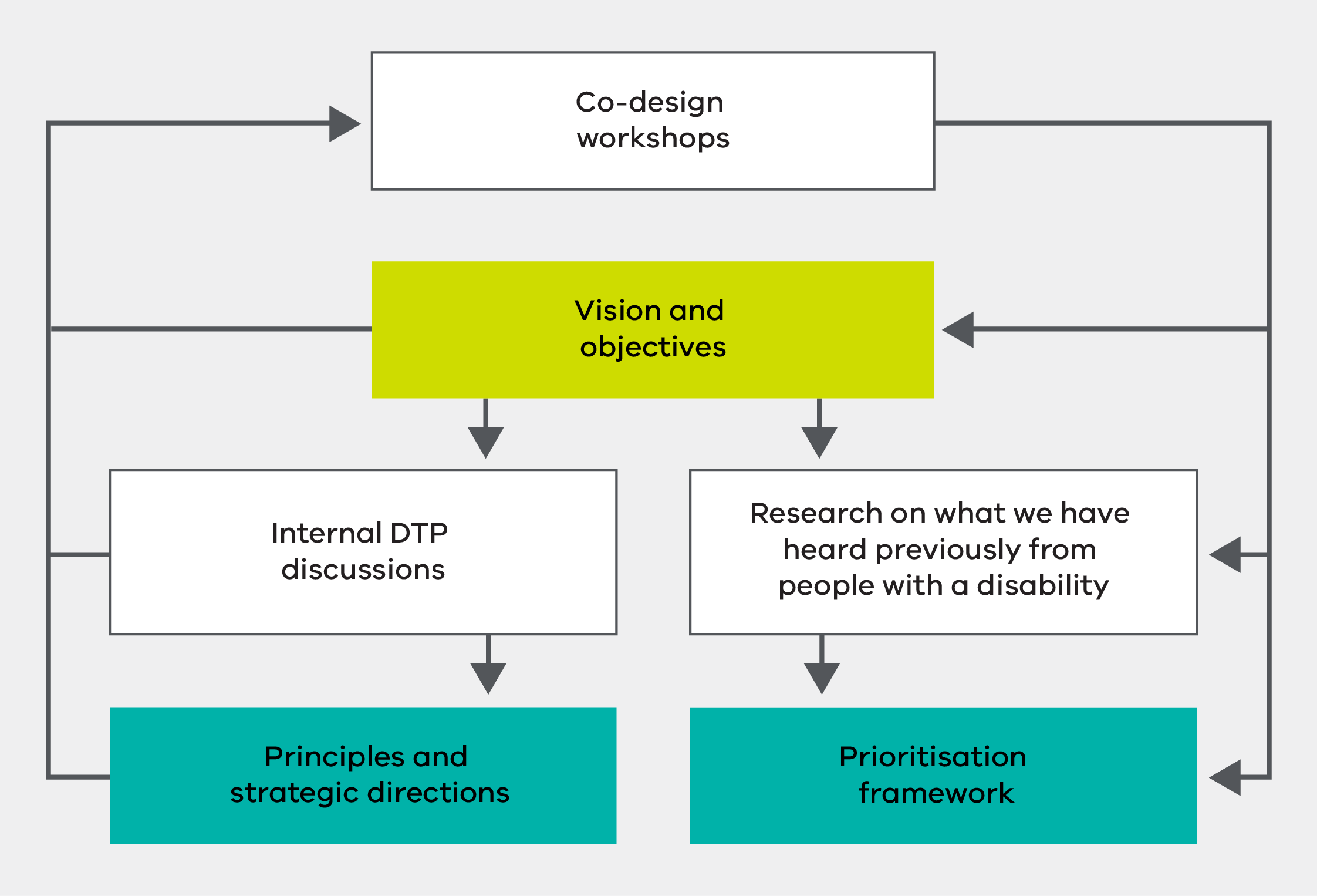 The co-design workshops with people with disability and other diverse backgrounds were the first step in developing this Strategic Framework and were critical to its development. Feedback from these workshops has been the primary input to the Strategic Framework.