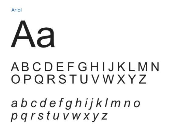 Please note: Arial should not be used in digital designs. This section is directed at developers when selecting fallback fonts. In the event a user cannot display the Brand Vic typefaces on their device, Arial should be used as the fallback font. The same rules established for VIC should be followed when it comes to using various weights within the Arial typeface family.