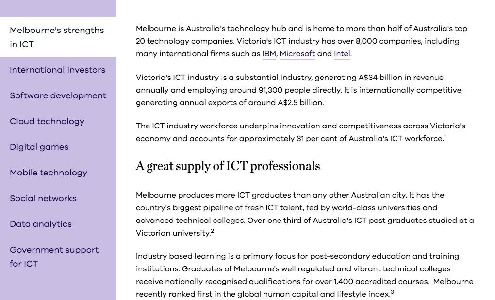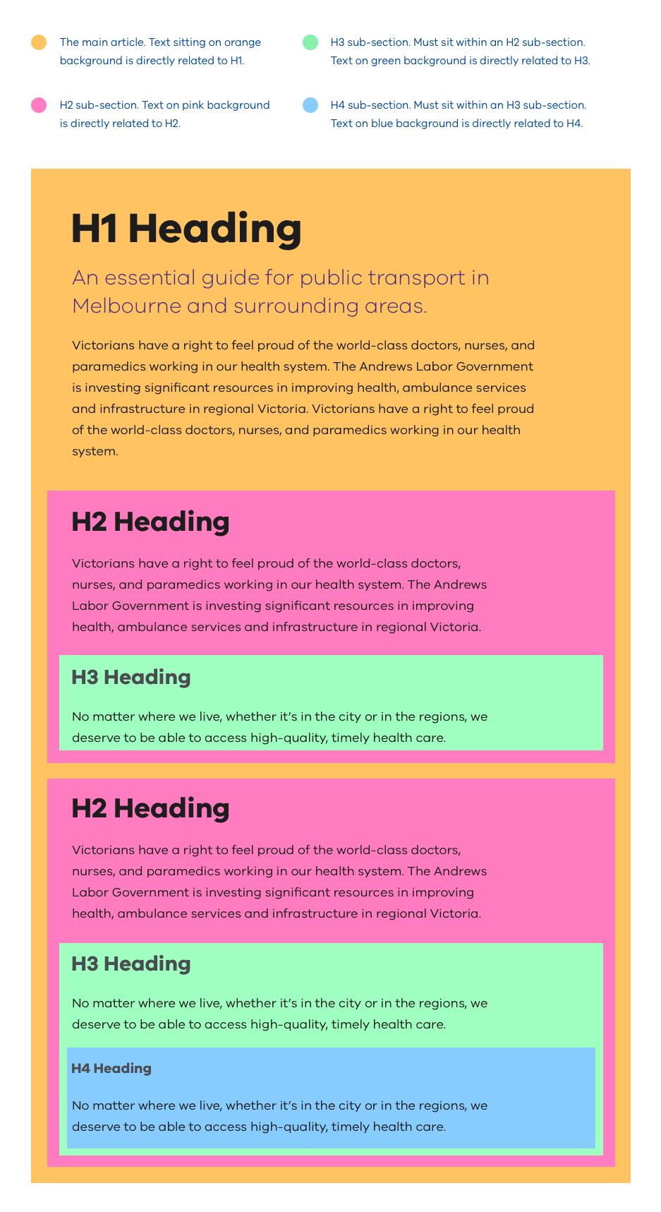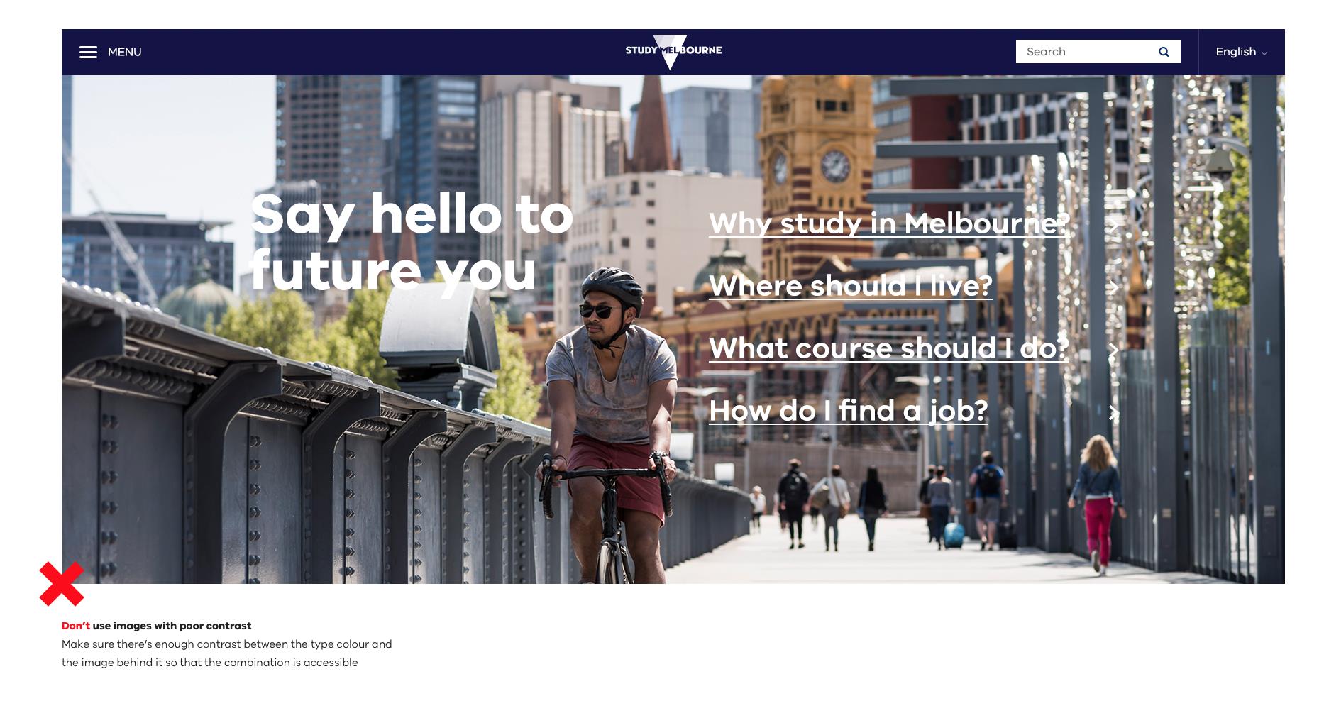 Some examples from the Study Melbourne website have been included below, to clarify exactly how both text links and headings can share the same font size, but work harmoniously across the one site.