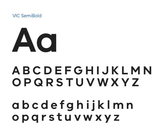 The VIC typeface family is the standard set of fonts used by Brand Victoria. The use of the VIC font depends on where a brand is positioned on the brand architecture scale (discussed in Brand Architecture). As a general rule, the closer a sub brand is aligned to the Masterbrand, the more likely VIC font will be used.