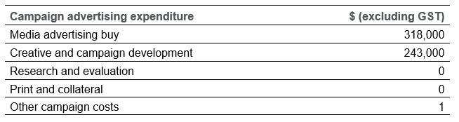 | Campaign advertising expenditure | $ (excluding GST) |